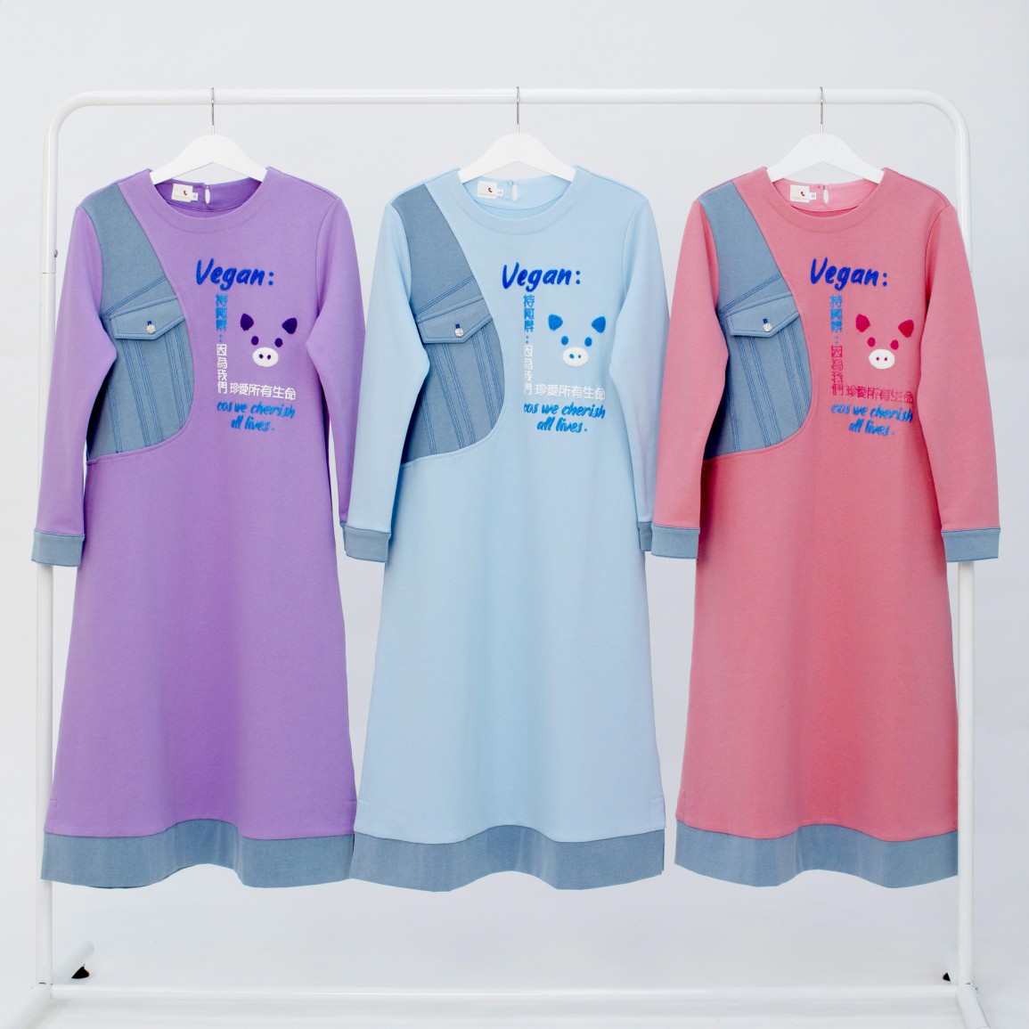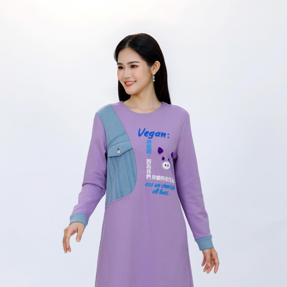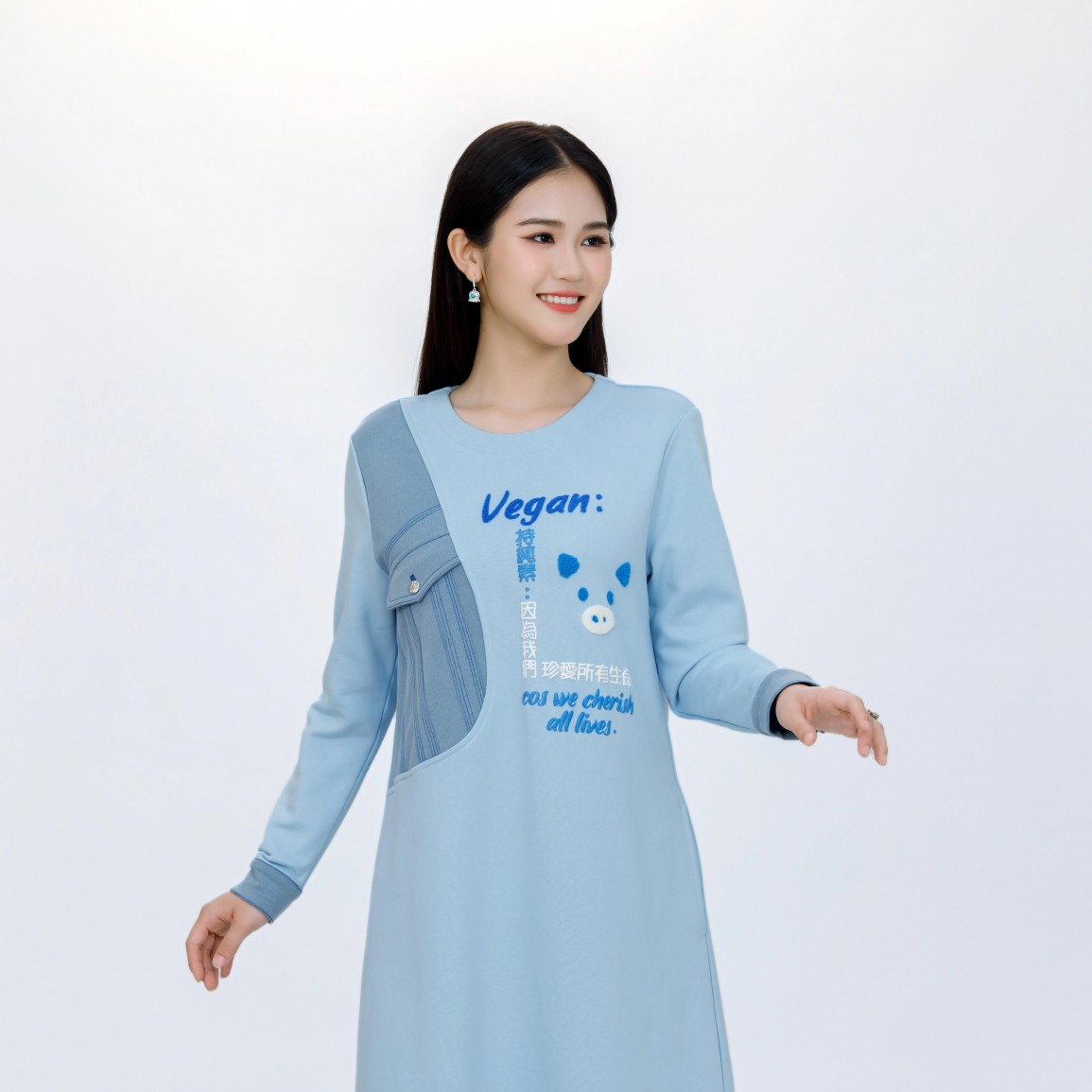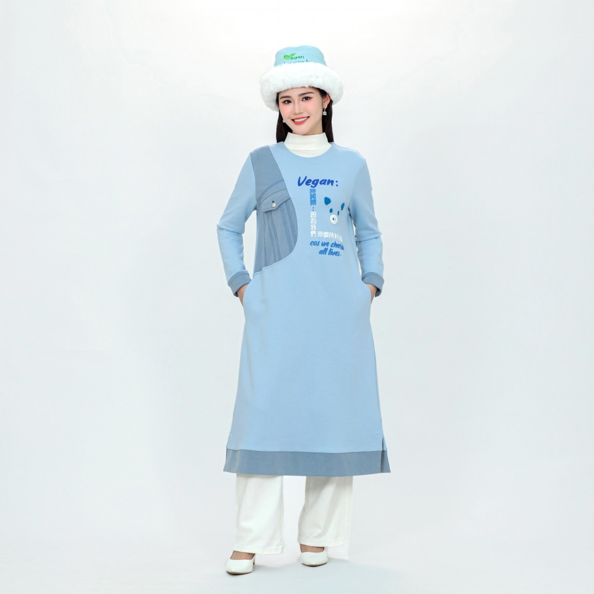 英文名稱: Vegan Slogan "Cos We Cherish All Lives." Warm Thick Cotton Dress