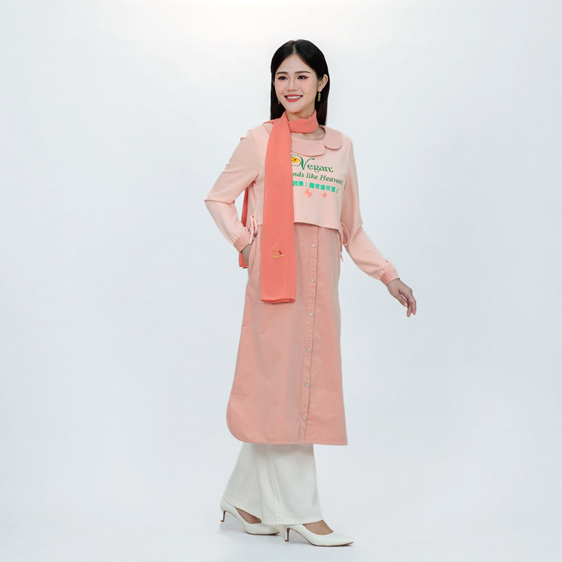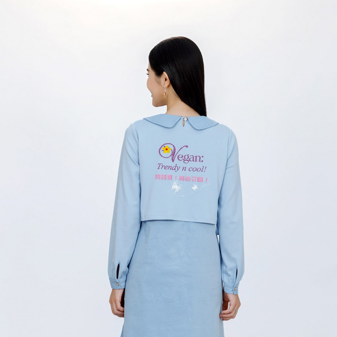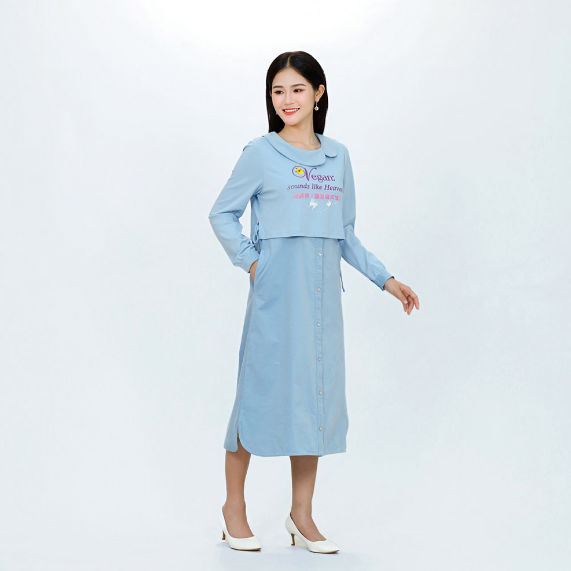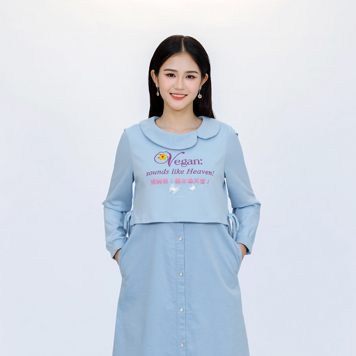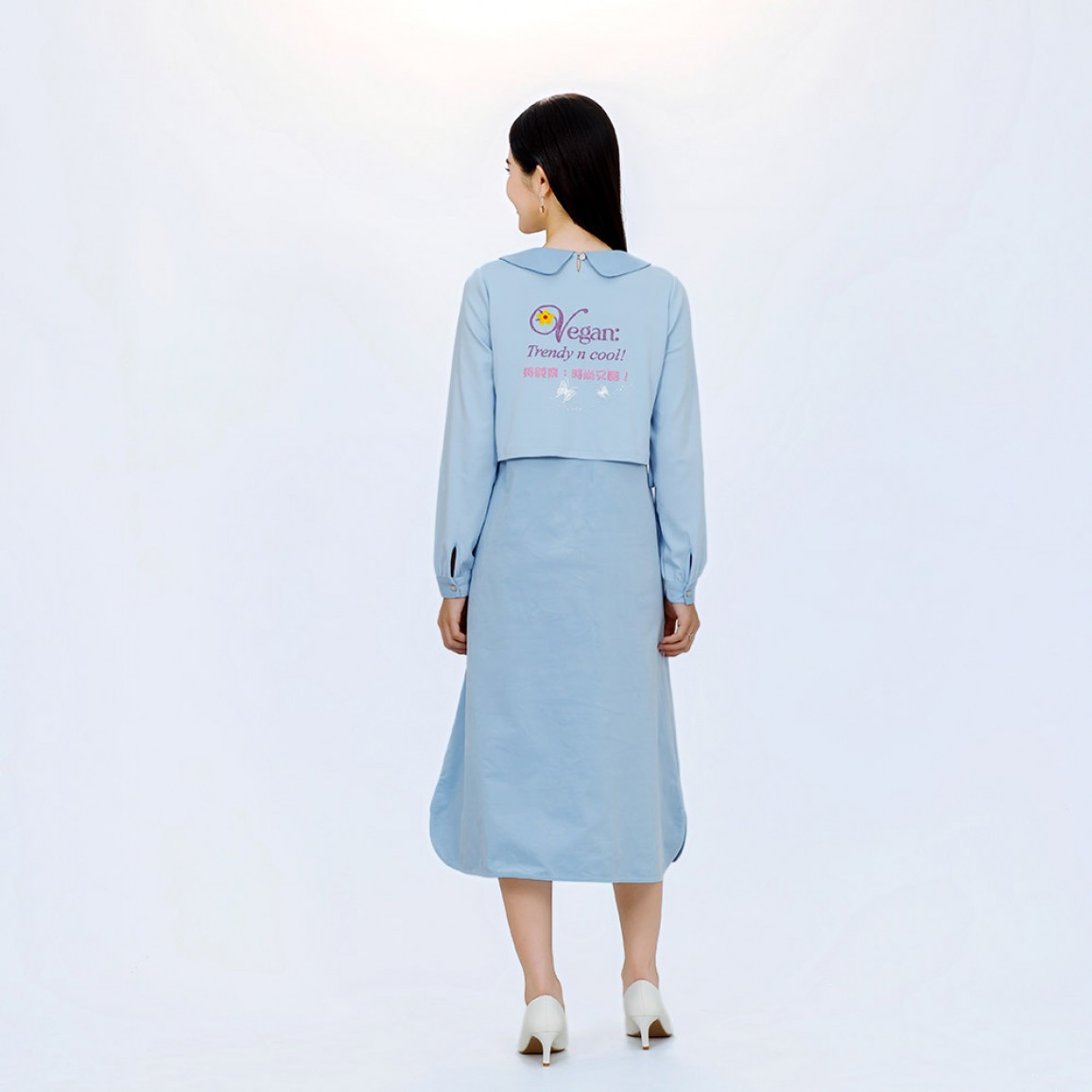 加入購物車商品說明 產品編號: B1551 中文名稱: 純素標語「好聰明的選擇」假兩件長袖洋裝 英文名稱: Vegan Slogan "What a Smart Choice!" Faux Two-Piece Long-Sleeved Dress 中文標語: 純素者:生活是美好且豐盛的! 持純素:好聰明的選擇! 英文標語: Vegan: life is good n abundant! Vegan: what a smart choice! 布料材質: 上衣: 92%棉 + 8%彈性纖維,裙: 97%棉 + 3%彈性纖維 衣物護理 * 請使用天然無化學成分洗劑,以保護衣物及環境。 * 深淺色衣物請分開洗滌。 * 洗滌時水溫請低於35℃,不宜長時間在洗劑中浸泡。 * 請勿使用漂白劑與柔軟精,使用化學柔軟劑會破壞有機棉原有的柔軟與透氣性。 * 洗衣機洗滌建議翻面套上洗衣網(袋),用柔洗模式洗滌。 * 機洗脫水請翻面放入細網洗衣袋中。 * 長時間曝曬易褪色,建議將衣服翻面晾曬,讓衣物色澤常保如新。 * 請勿使勁扭乾,建議可使用洗衣機中慢速脫水。 * 不可烘乾。 * 印花圖案表面不可直接熨燙,請覆蓋布熨燙。 小提醒 商品圖片為實物拍攝,由於拍攝光線、顯示器色差等因素,照片與實物可能略有色差。 清海無上師為純素黃金世代打造一系列純素標語服裝及配件 喚醒世人慈悲愛心的標語 為世人開啟通往純素和平世界的大門! 採用柔軟微彈棉質布料, 觸感親膚、穿著舒適, 無論外出、休閒或靜心時光,都倍感自在。 氣質溫潤的馬卡龍色系,洋溢療癒與溫柔的氛圍, 不論任何年齡層穿著,都能展現出高雅柔和的氣質。 假兩件設計,增添穿搭層次感; 高腰線造型,修飾身形更顯修長。 洋裝前後飾有上帝慈愛提醒的純素標語與美麗圖案, 讓每一次穿著,都成為散播和平與愛的溫柔行動。..