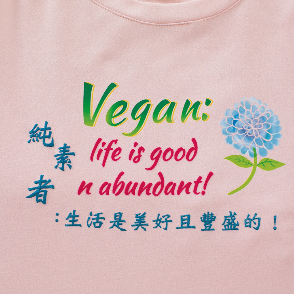 加入購物車商品說明 產品編號: A1524 中文名稱: 純素標語長版洋裝 (持純素的附帶作用:更加快樂!) 英文名稱: Vegan Slogan Long Dress (Vegan side effect: u’ll b happier! u’ll have more energy!) 中文標語: 持純素的附帶作用:更加快樂! 持純素的附帶作用:更加精力充沛! 英文標語: Vegan side effect: u’ll b happier! Vegan side effect: u’ll have more energy! 布料材質: 95%棉 + 5%彈性纖維 冰瓷棉吸濕透氣 衣物護理 * 請使用天然無化學成分洗劑,以保護衣物及環境。 * 深淺色衣物請分開洗滌。 * 洗滌時水溫請低於35℃,不宜長時間在洗劑中浸泡。 * 請勿使用漂白劑與柔軟精,使用化學柔軟劑會破壞有機棉原有的柔軟與透氣性。 * 洗衣機洗滌建議翻面套上洗衣網(袋),用柔洗模式洗滌。 * 機洗脫水請翻面放入細網洗衣袋中。 * 長時間曝曬易褪色,建議將衣服翻面晾曬,讓衣物色澤常保如新。 * 請勿使勁扭乾,建議可使用洗衣機中慢速脫水。 * 不可烘乾。 * 印花圖案表面不可直接熨燙,請覆蓋布熨燙。 小提醒 商品圖片為實物拍攝,由於拍攝光線、顯示器色差等因素,照片與實物可能略有色差。 清海無上師為純素黃金世代打造一系列純素標語服裝及配件 喚醒世人慈悲愛心的標語 為世人開啟通往純素和平世界的大門! 穿上純素標語天衣 散發真善美聖光 照亮寰宇四方 您是推動純素世界、締造世界和平的英雄! ..