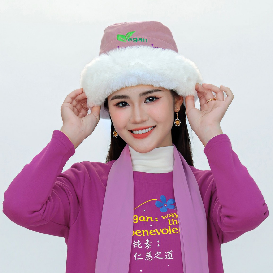 中文名稱: 持純素=通往天堂之路_保暖純素皮草造型帽