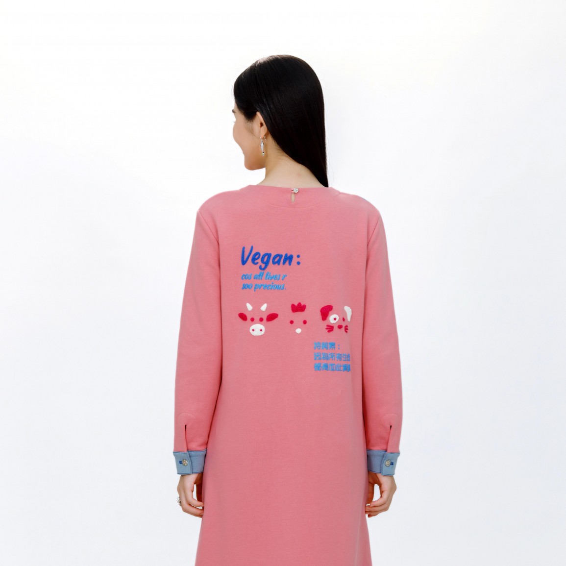 Name: Vegan Slogan "Cos We Cherish All Lives" Warm Thick Cotton Dress