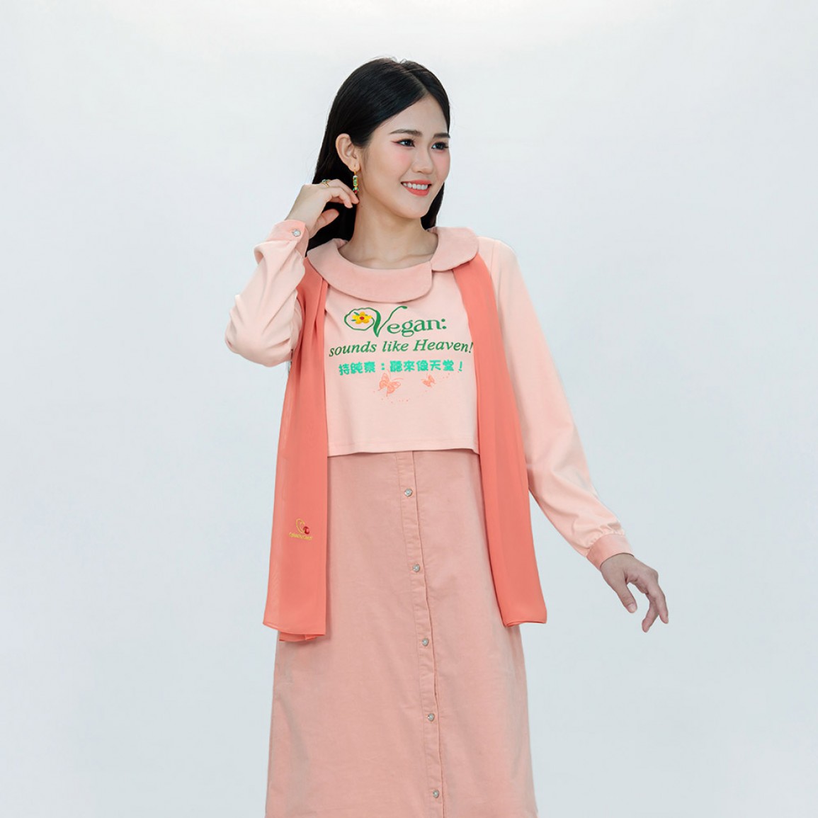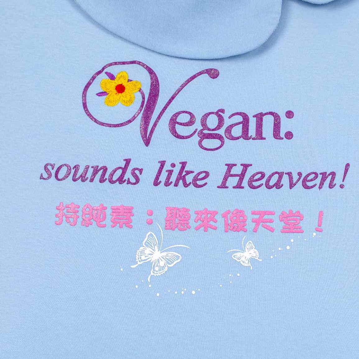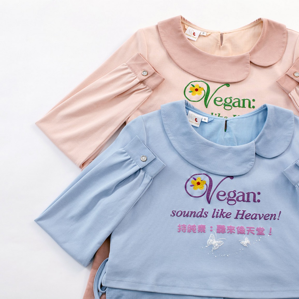 Supreme Master Ching Hai has created a magnificent series of slogan-decorated garments & accessories for the vegan Golden Era.