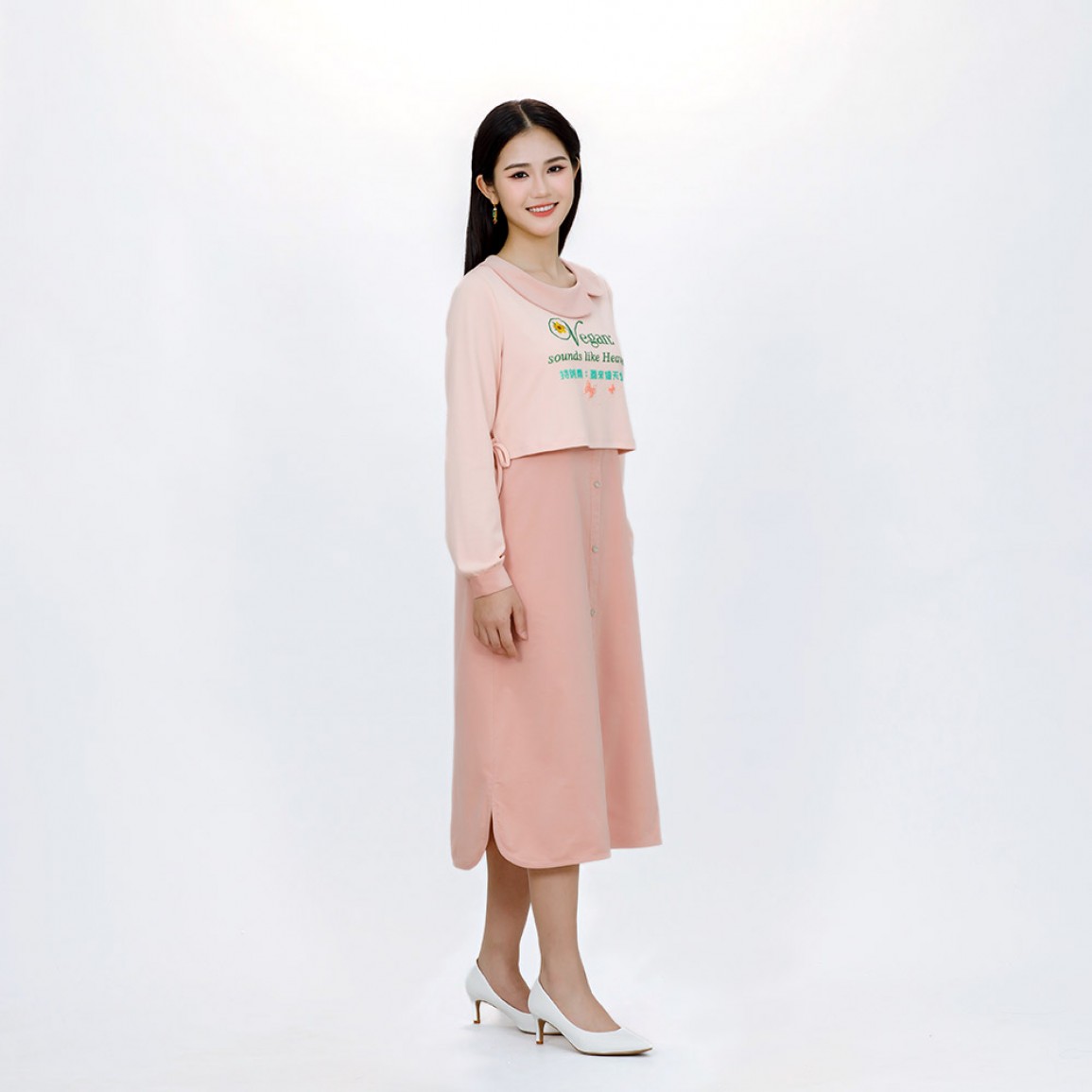 Name: Vegan Slogan "Sounds Like Heaven!" Collared Corduroy Skirt Stretch Cotton Dress