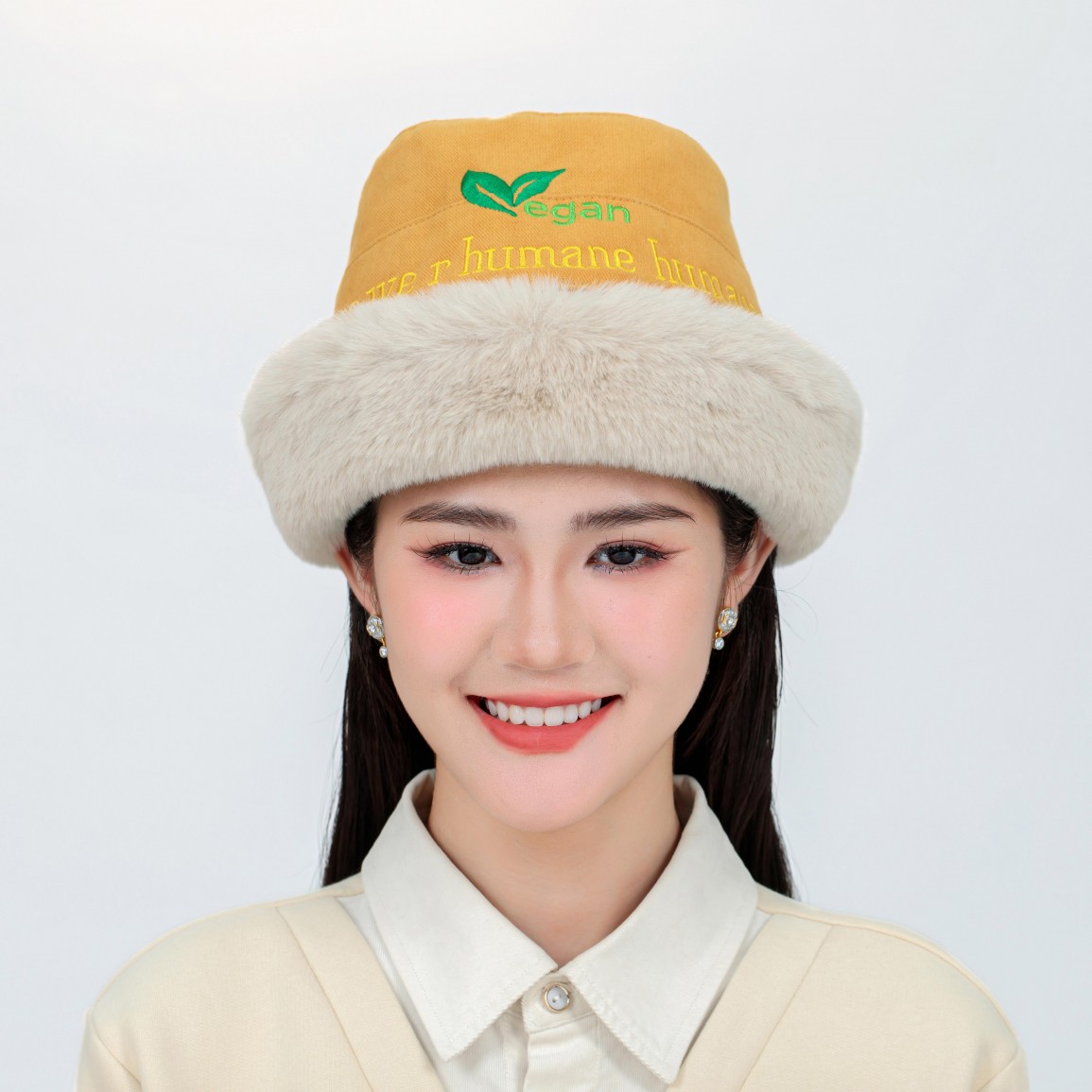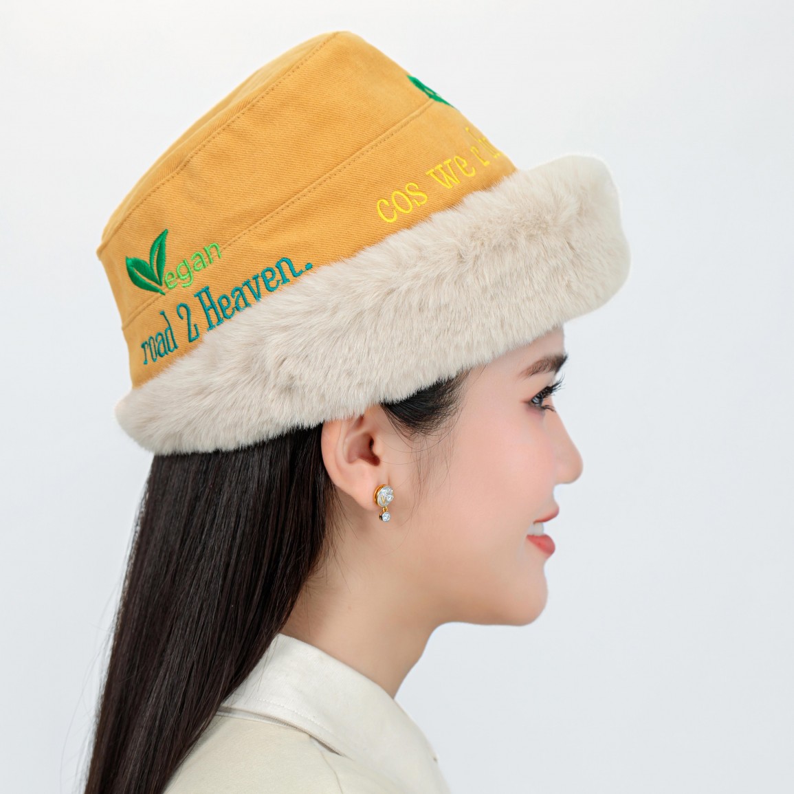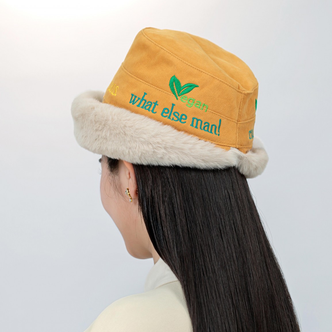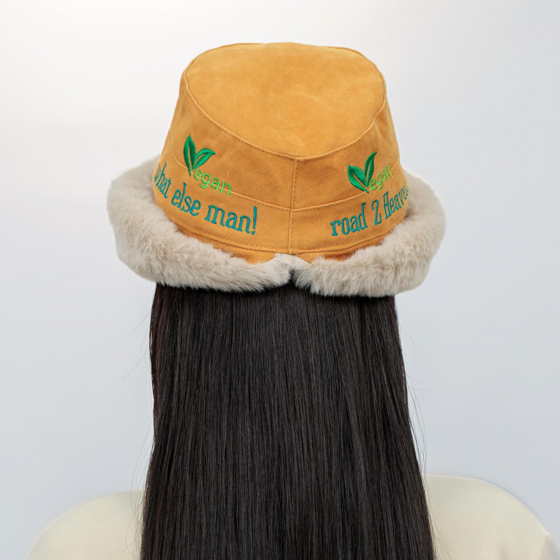 Indulge in the warmth and style of our fur-styled hats, adorned with vegan slogans, showcasing both eco-awareness and luxurious fashion.