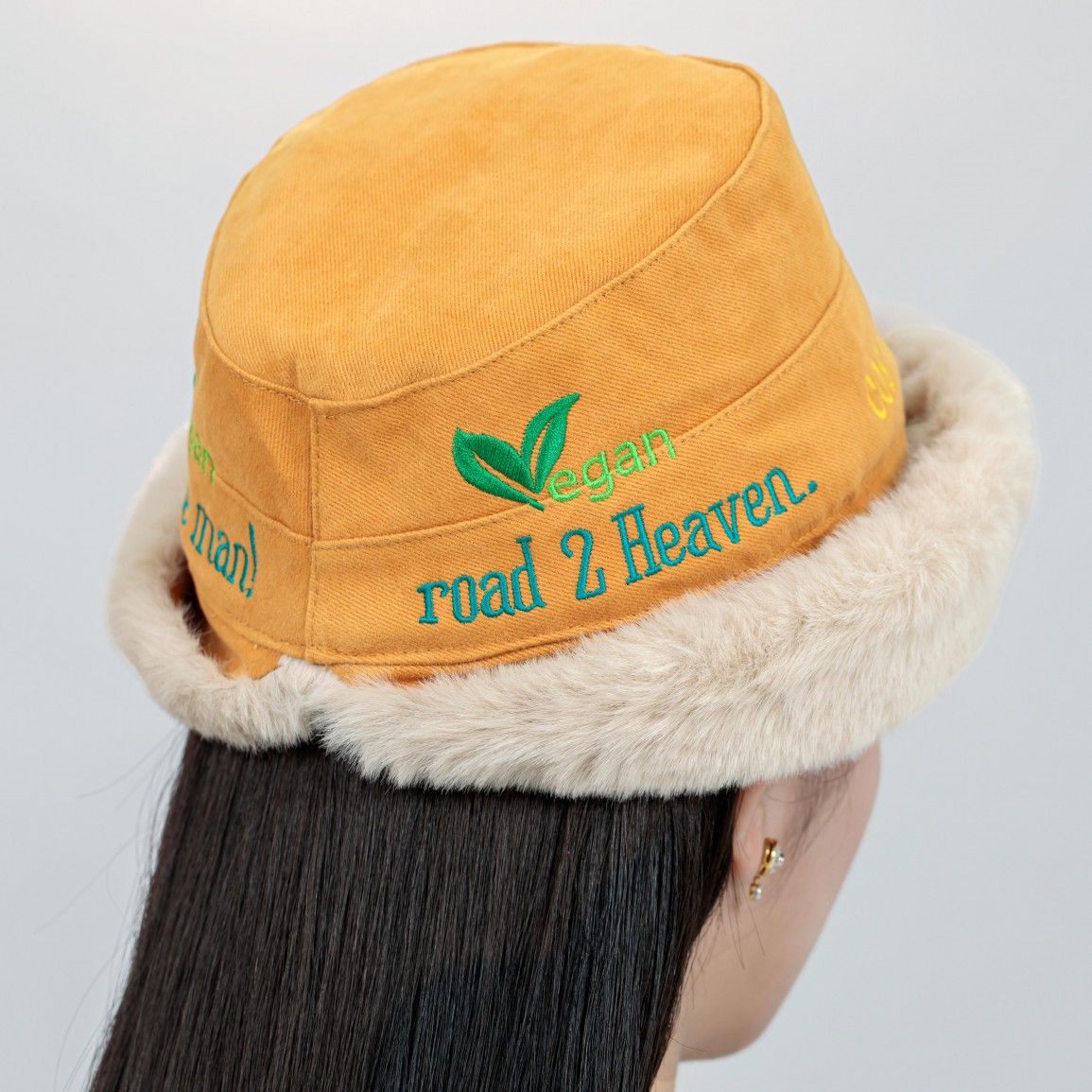 Name: Vegan Slogan "road 2 Heaven" Warm Vegan Fur Styling Hat