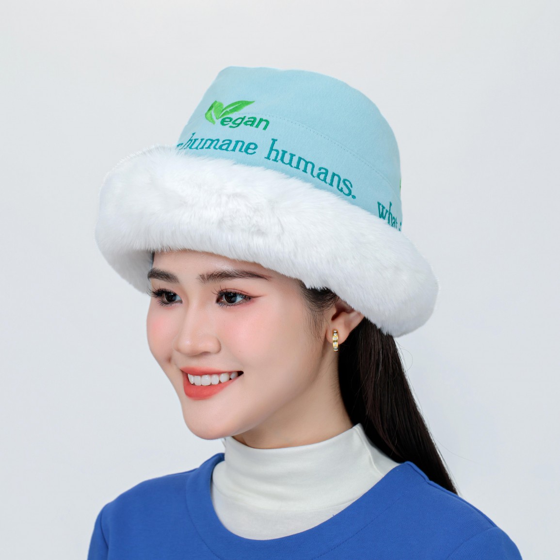 Vegan Slogan "road 2 Heaven" Warm Vegan Fur Styling Hat B6552【Celestial Cloud】