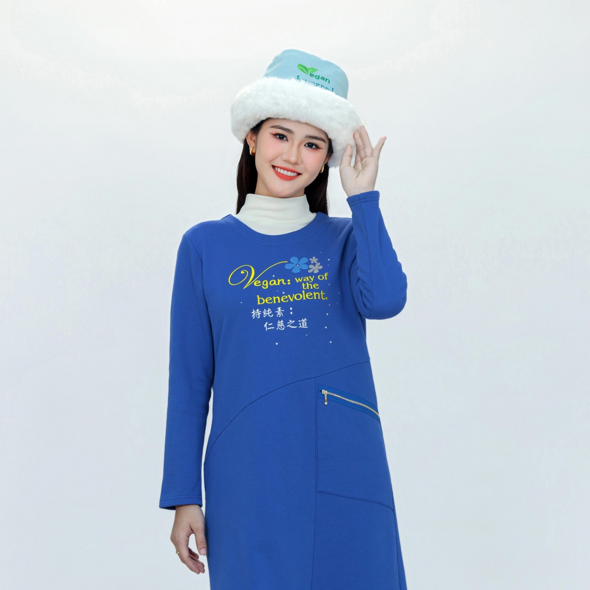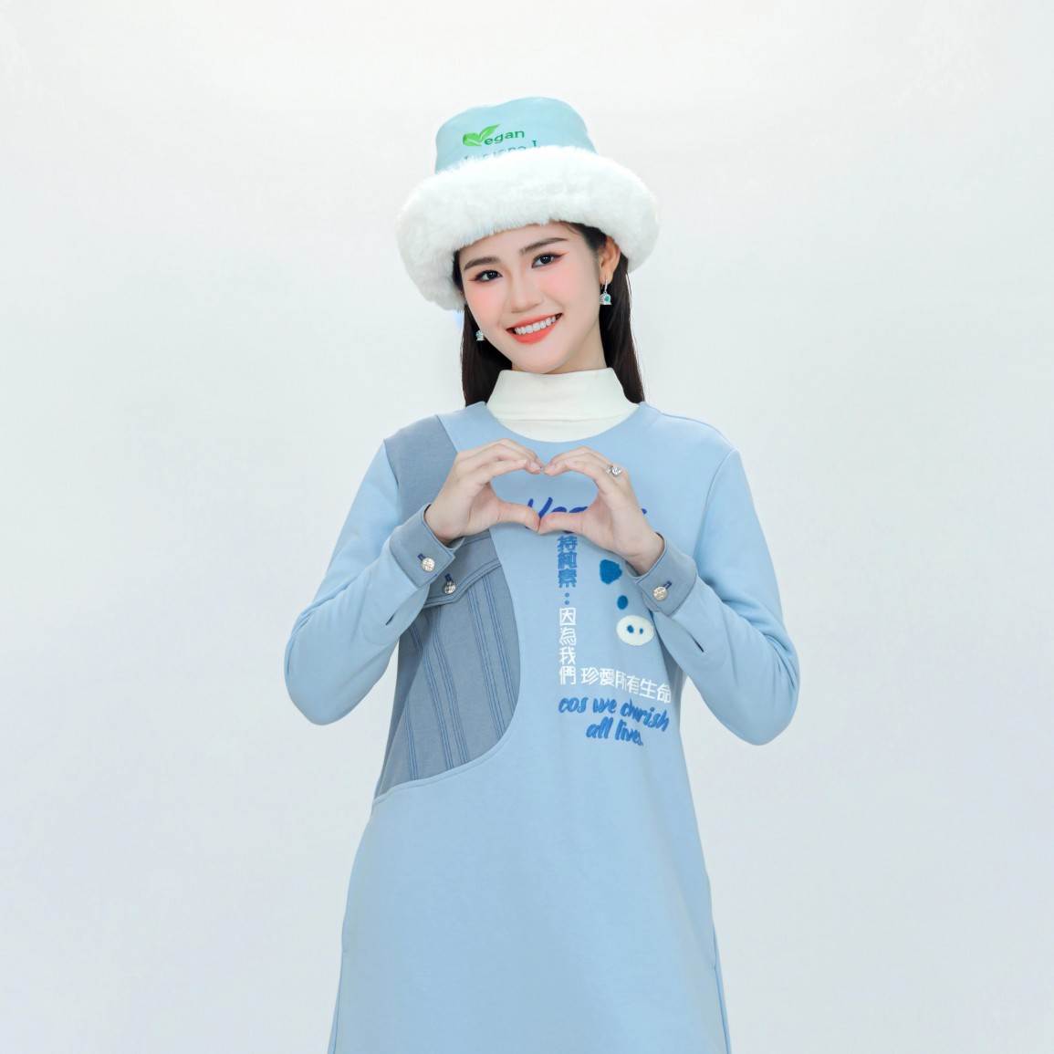 The unique design showcases vegan slogans on three sides, surrounded by Heaven's holy light, bringing auspicious blessings to the world.