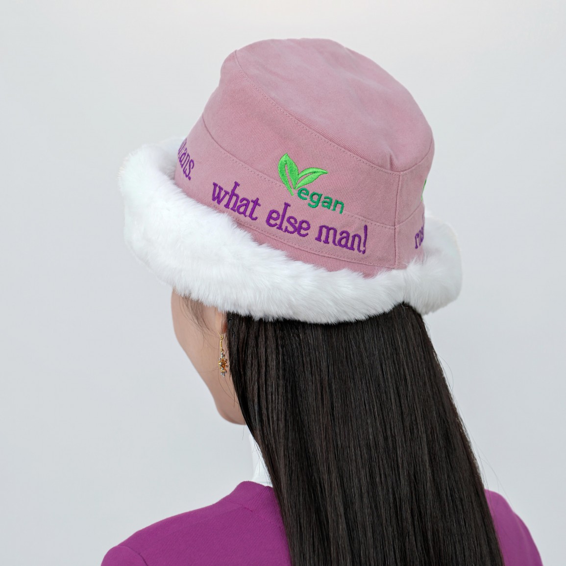 Name: Vegan Slogan "road 2 Heaven" Warm Vegan Fur Styling Hat