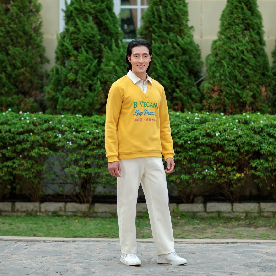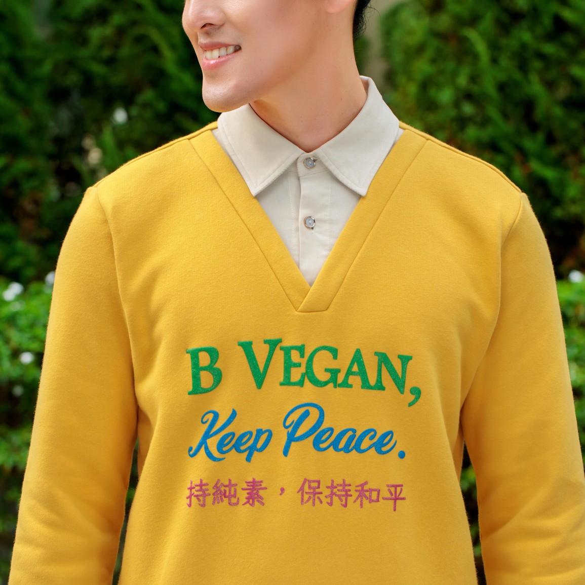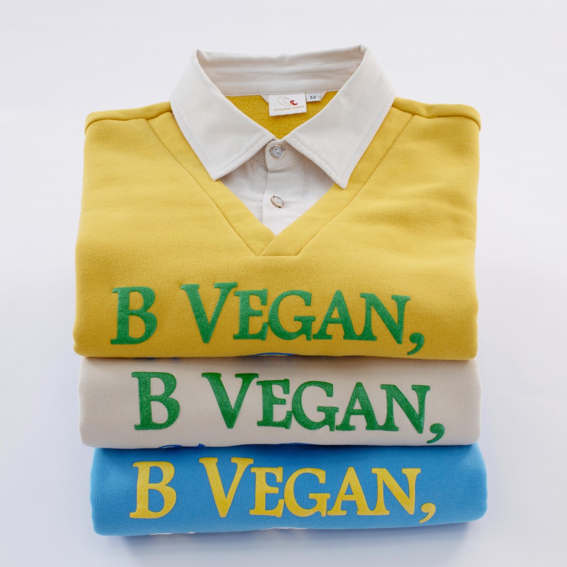 Vegan Slogan Unisex Cotton Collared Sweater Layered Look B3051【Celestial Cloud】